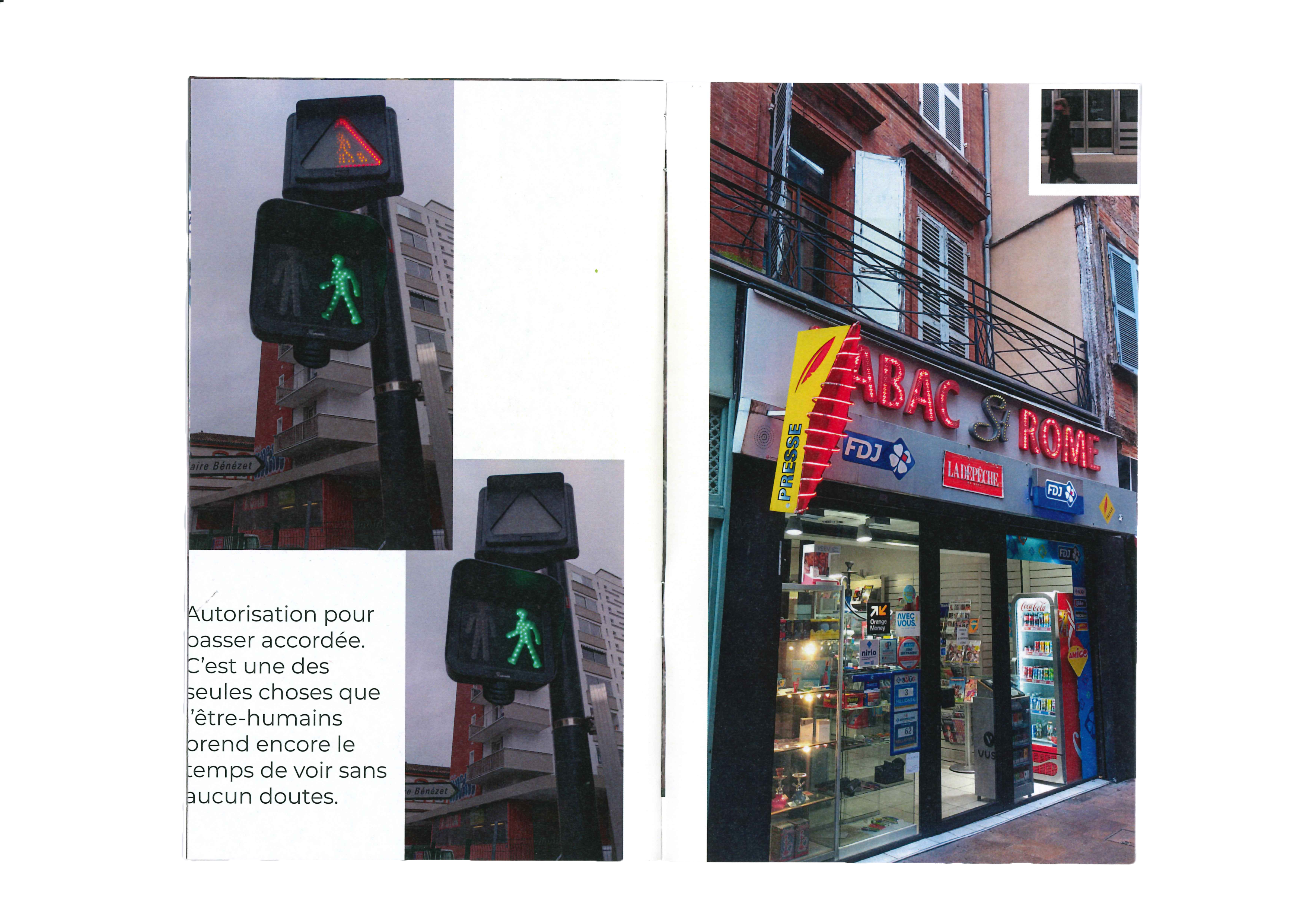 Édition photographique qui raconte la promenade matinale et contemplative d’une personne dans Toulouse, la ville s’éveille et il prend le temps de voir..
